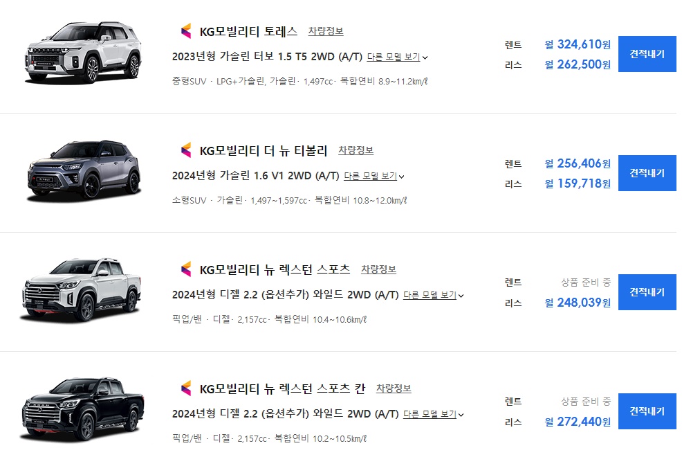 KG모빌리티 뉴렉스턴 스포츠칸 2024년형 디젤 2.2 와일드 2WD (A/T) 장기렌트