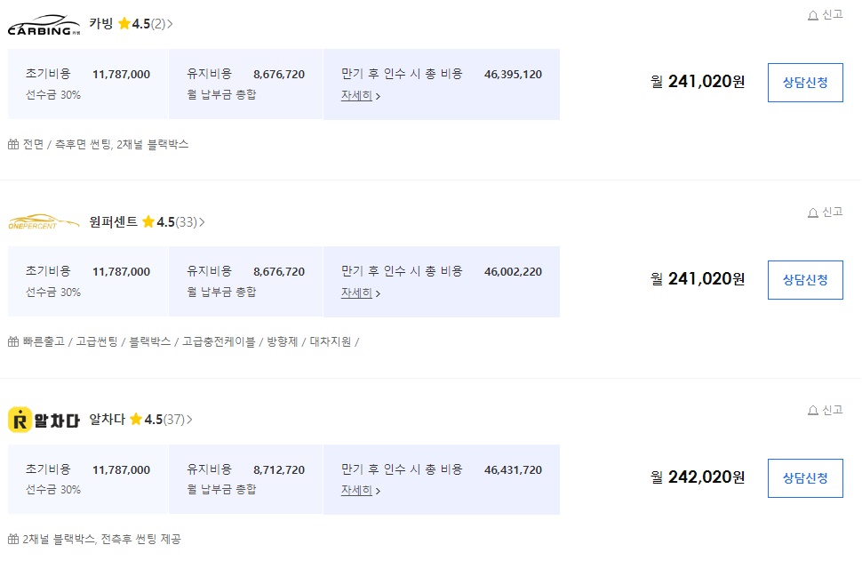 쏘렌토는 2.5 가솔린 터보, 2.2 디젤, 터보 하이브리드로 나뉘어져 있으며 프레스티지, 노블레스, 시그니처, 그래비티 트림이 있습니다. 가격은 3500만원대에서 4598만원대로 옵션 추가시 가격이 더 늘어날 수 있습니다. 쏘렌토를 신차로 구입하는것 뿐만 아니라 장기렌트나 리스로도 많은 분들이 이용하고 있습니다. 특히 개인사업자나 법인이라면 장기렌트의 경우 비용처리로 절세효과가 있기 때문에 많이 선호하십니다. 쏘렌토 장기렌트 가격 비교해보시고 더 좋은 조건으로 쏘렌토 장기렌트 하여 이용해보세요.