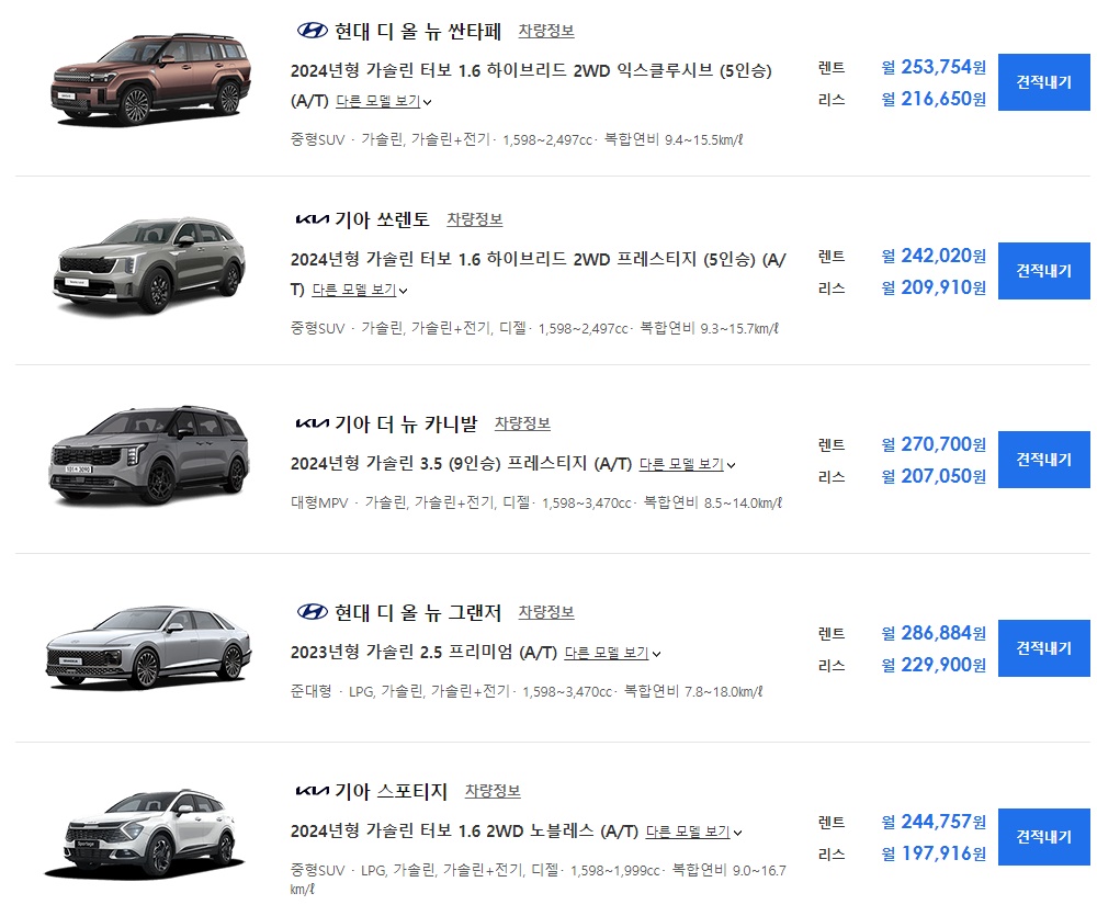 장기렌트 가격비교