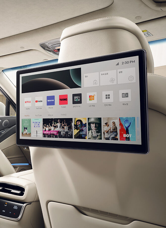 27인치 통합형 와이드 디스플레이: 클러스터와 인포테인먼트 시스템을 하나로 연결하여 정보 확인이 용이하고, 2분할 또는 3분할 화면으로 다양한 콘텐츠를 즐길 수 있습니다.