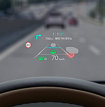 - 헤드업 디스플레이 (HUD): 주행 관련 주요 정보를 운전자의 시야에 직접 투사하여 운전의 편의성과 안전성을 높여줍니다.