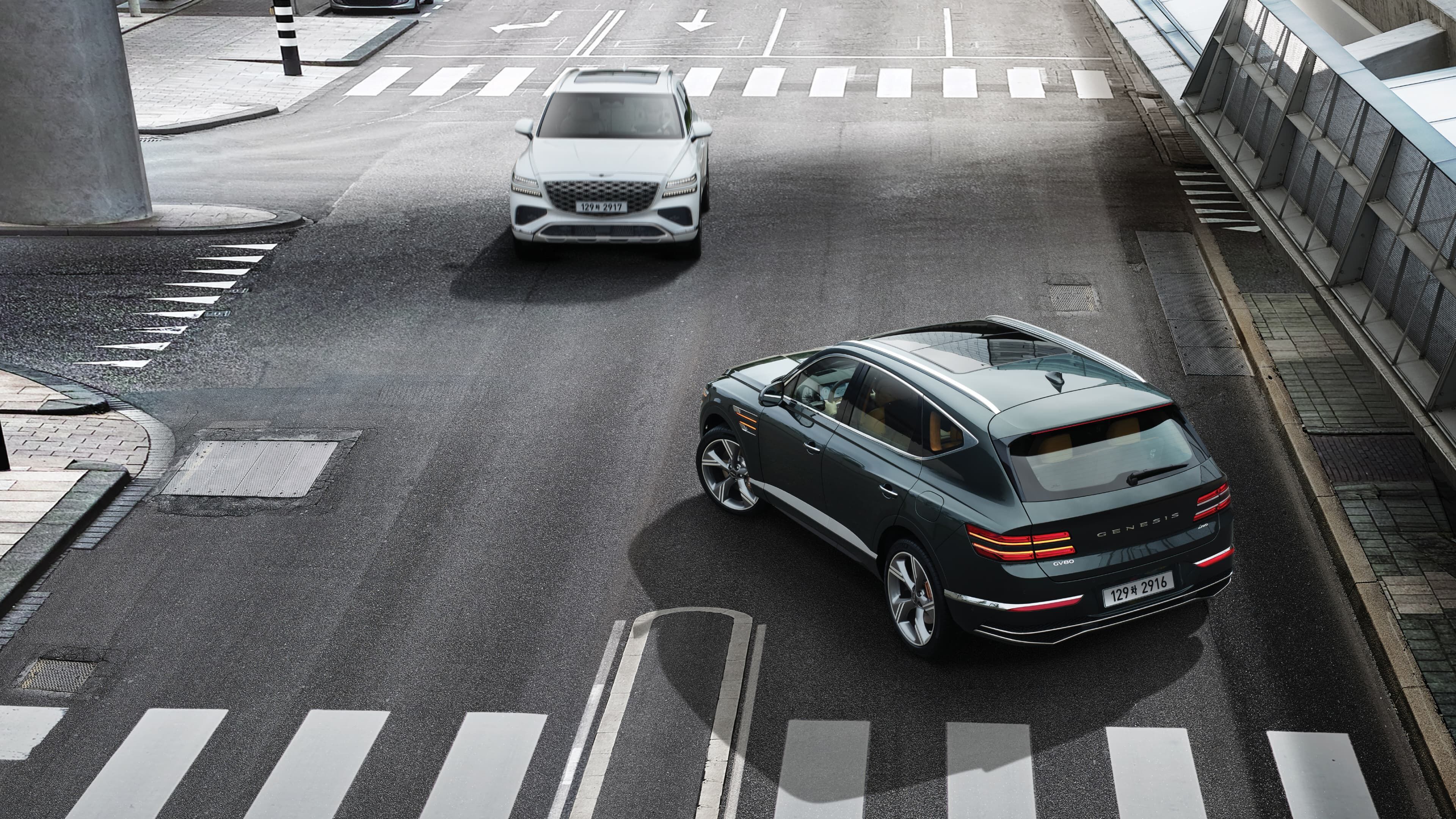 • 주행 안전 시스템: GV80은 다양한 첨단 운전자 보조 시스템(ADAS)을 갖추고 있습니다. 예를 들어, 고속도로 주행 보조, 차로 유지 보조, 전방 충돌 방지 보조, 교차로 충돌 방지 보조 등 다양한 기능이 운전자의 안전을 보장합니다.