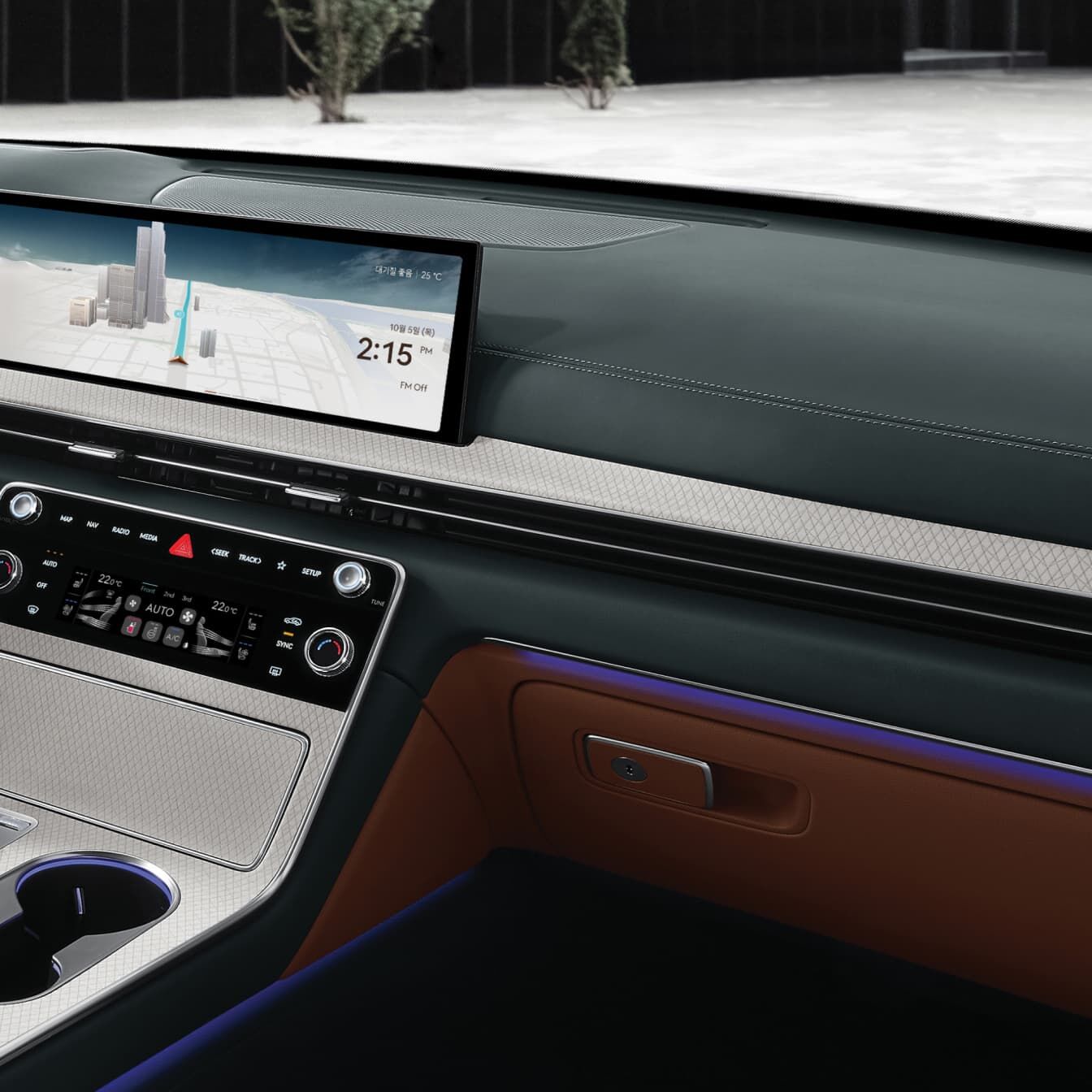 - 제네시스 인포테인먼트 시스템: 27인치 OLED 디스플레이를 통해 내비게이션, 차량 정보, 미디어를 통합적으로 제어할 수 있습니다.