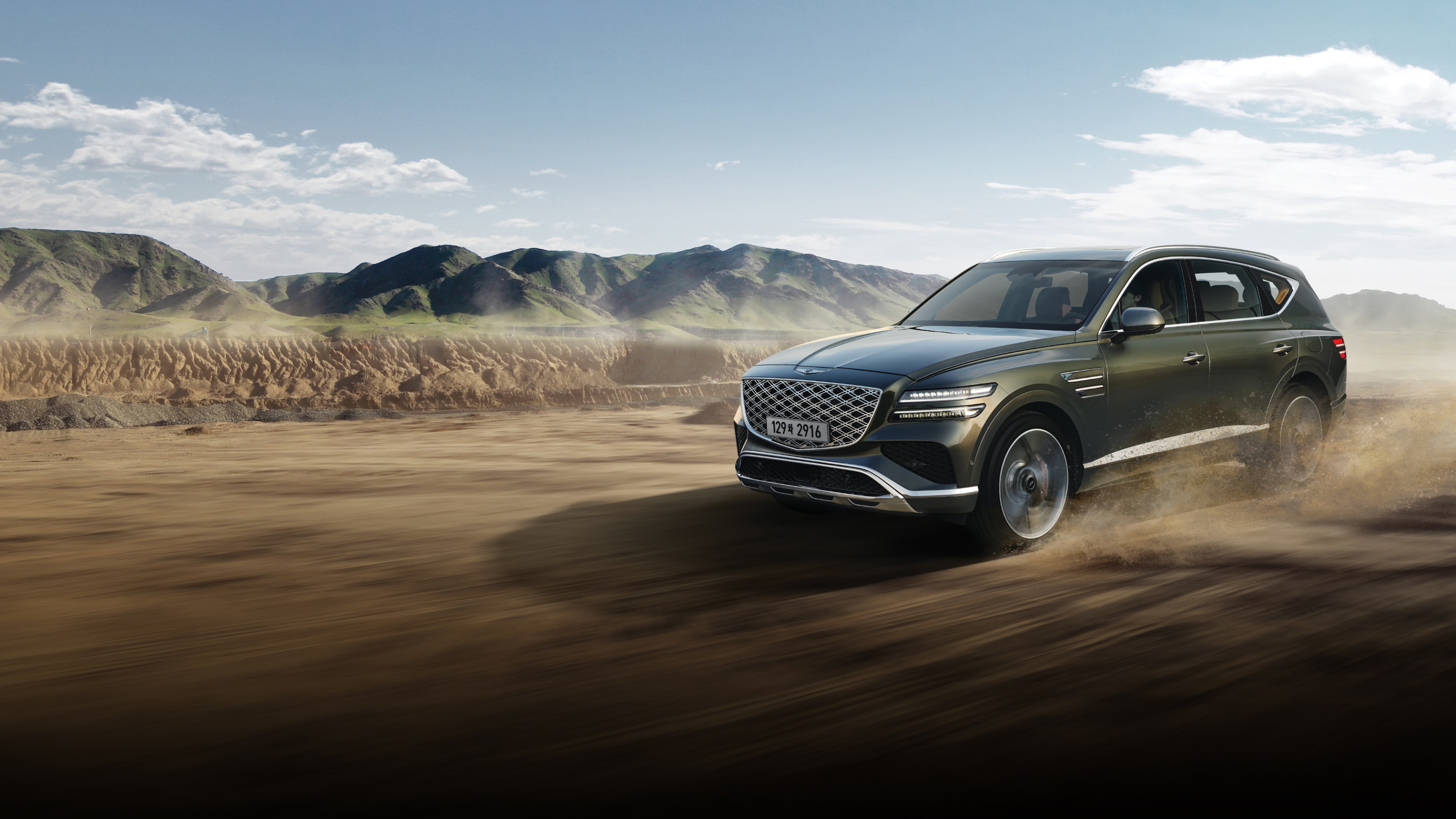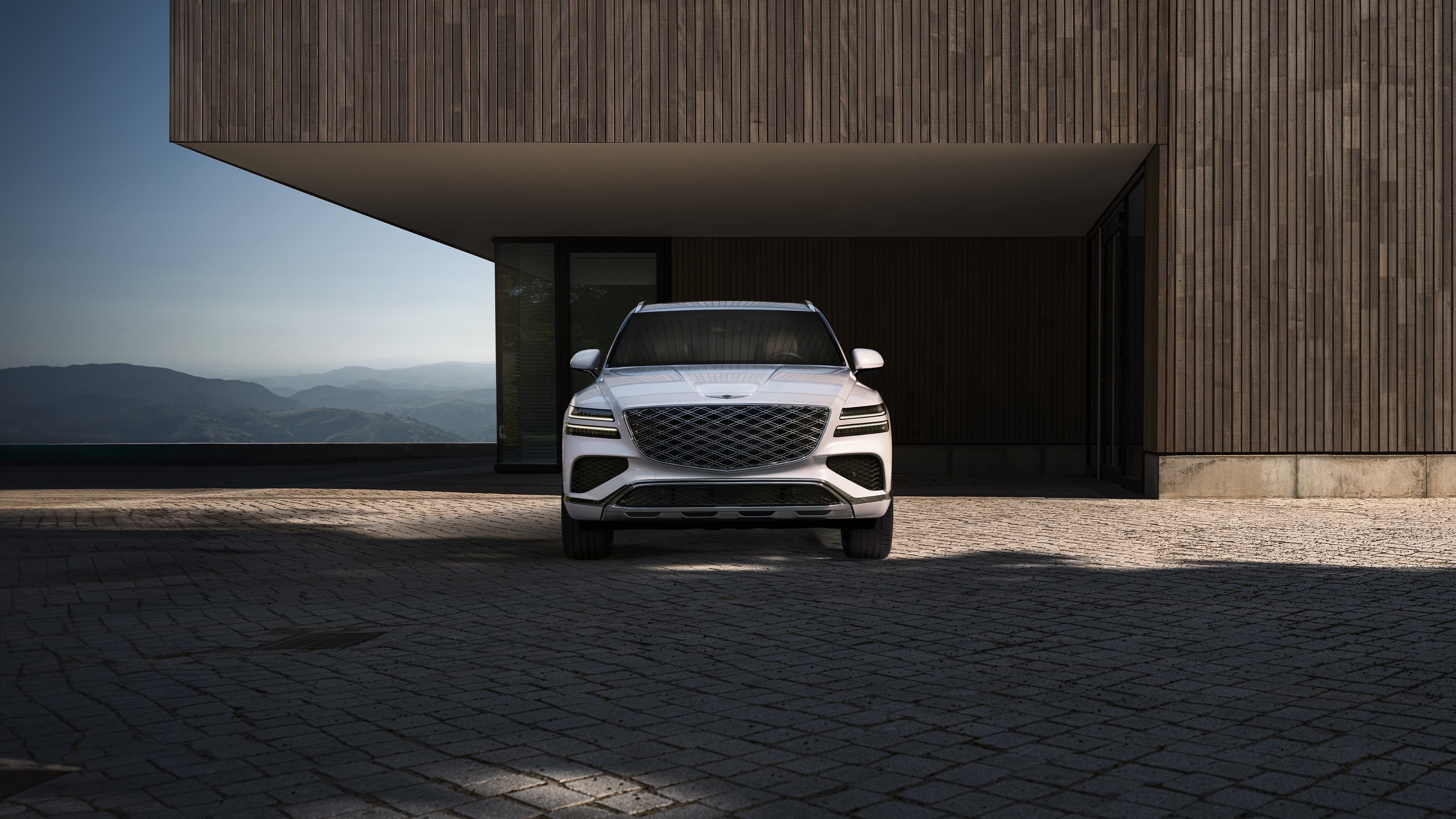 - GV80의 전면부는 대형 크레스트 그릴과 G-매트릭스 패턴을 특징으로 합니다. 이 그릴은 차량의 강인한 인상을 강조하며, MLA(Multi-Layered Architecture) 헤드램프는 세련되고 미래지향적인 디자인을 완성합니다.